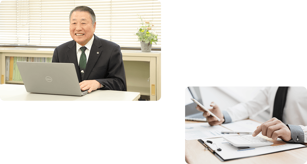 税金の申告のほか、起業に関連した届出、記帳代行、給与計算など、事業や暮らしに関わるさまざまなお困りごとに対応しています。